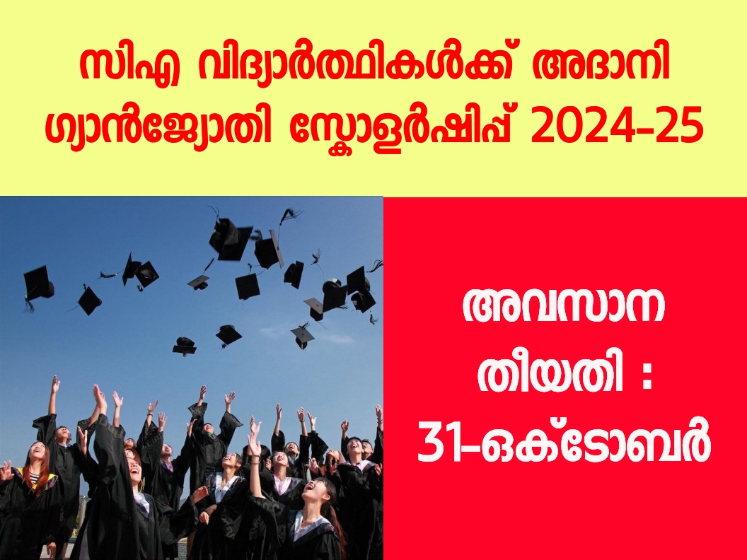 അപേക്ഷകൾ https://www.buddy4study.com/page/adani-gyan-jyoti-scholarship വെബ്സൈറ്റ് വഴി ഓൺലൈൻ ആയി സമർപ്പിക്കാം.